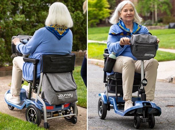 Each scooter comes with two well-made bags and a mesh, expandable drink holder that can be put on either side.